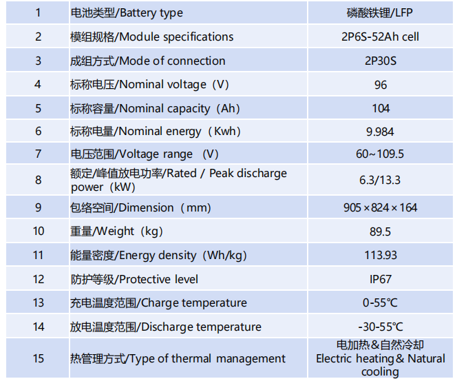96V/9.98kwh LFP battery pack for electric light vehicle specifications introduction